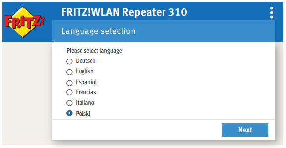 Aby otworzyć panel zarządzający urządzeniem, należy w przeglądarce internetowej wpisać adres http://fritz.repeater lub http://192.168.178.2 lub http://169.254.1.1